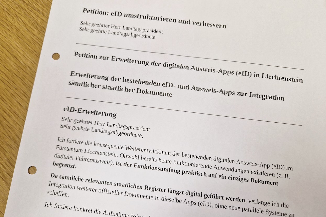 Wie Emmanuel Hoop in der Petition schreibt, sei der Funktionsumfang der eID in Liechtenstein heute praktisch auf ein einziges Dokument begrenzt. Die Schweiz und Liechtenstein verfüge jedoch über die digitale Kompetenz und die technischen Voraussetzungen, um eine moderne, umfassende digitale Identitätslösung umzusetzen.