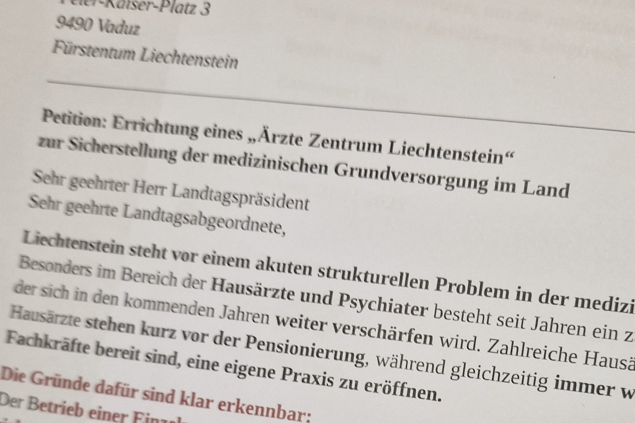 Die zweite von Emmanuel Hoop für den Dezember-Landtag eingereichte Petition fordert die Prüfung eines «Ärzte Zentrum Liechtenstein» zur Sicherstellung der medizinischen Grundversorgung.